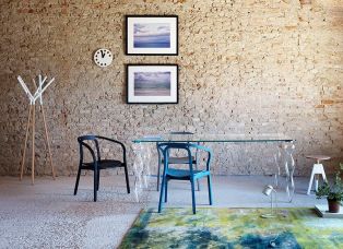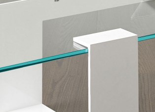 This Glass Dining Table is designed and manufactured by Miniforms contemporary furniture company. Designed using a toughened sheet of toughened glass and 4 Murano Glass legs. The iconic Murano glass gives this table identity and stance. The Glass Dining Table comes in sizes from 1800mm to 2400mm long.